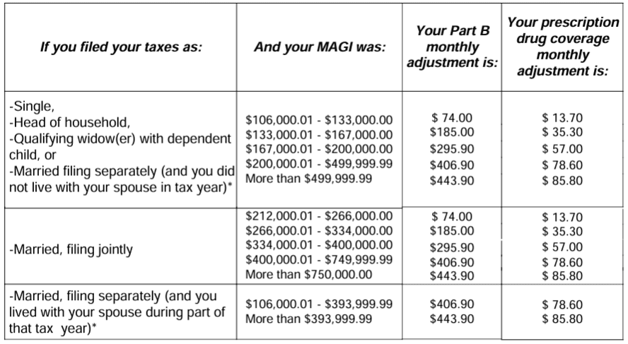 For reference, please see the chart for IRMAA adjustments for 2025 premium amounts (based on 2023 MAGI calculations):